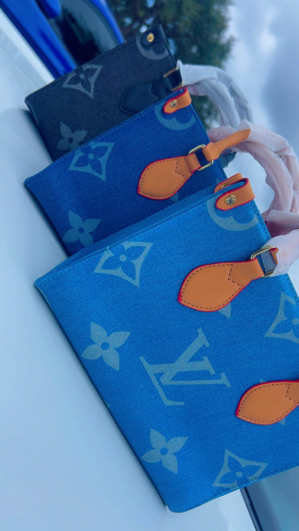 Step out in effortless style with our Denim Luxe Tote, where timeless denim meets bold sophistication. Featuring rich blue and classic black hues, each tote is accented with sleek tan leather straps and gold-tone hardware for that perfect pop of luxury. Spacious, durable, and fashion-forward, these totes are ideal for everyday chic or weekend getaways.