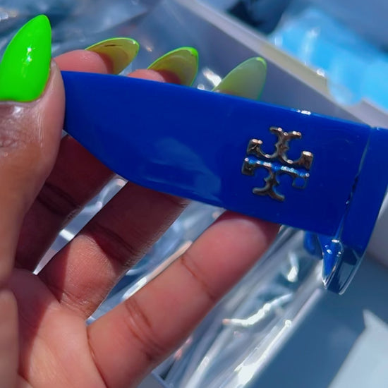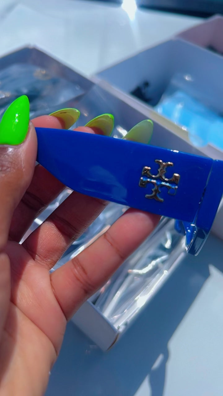 Turn heads in bold sophistication with our Royal Blue Luxe Shades a stunning blend of modern design and timeless elegance. Featuring a sleek royal blue frame accented with a signature gold emblem, these sunglasses deliver instant luxury and confidence. Perfect for sunny days, stylish outings, or simply making a statement wherever you go.